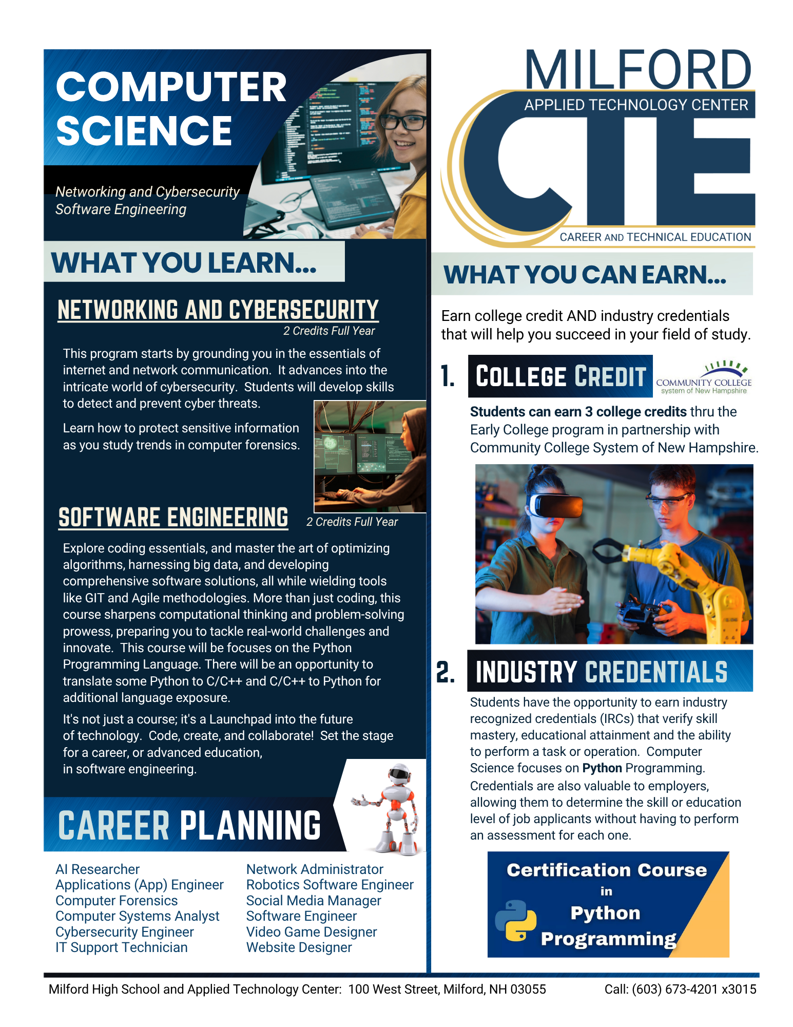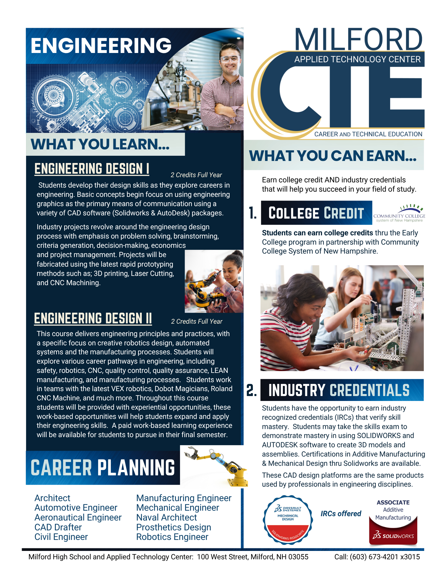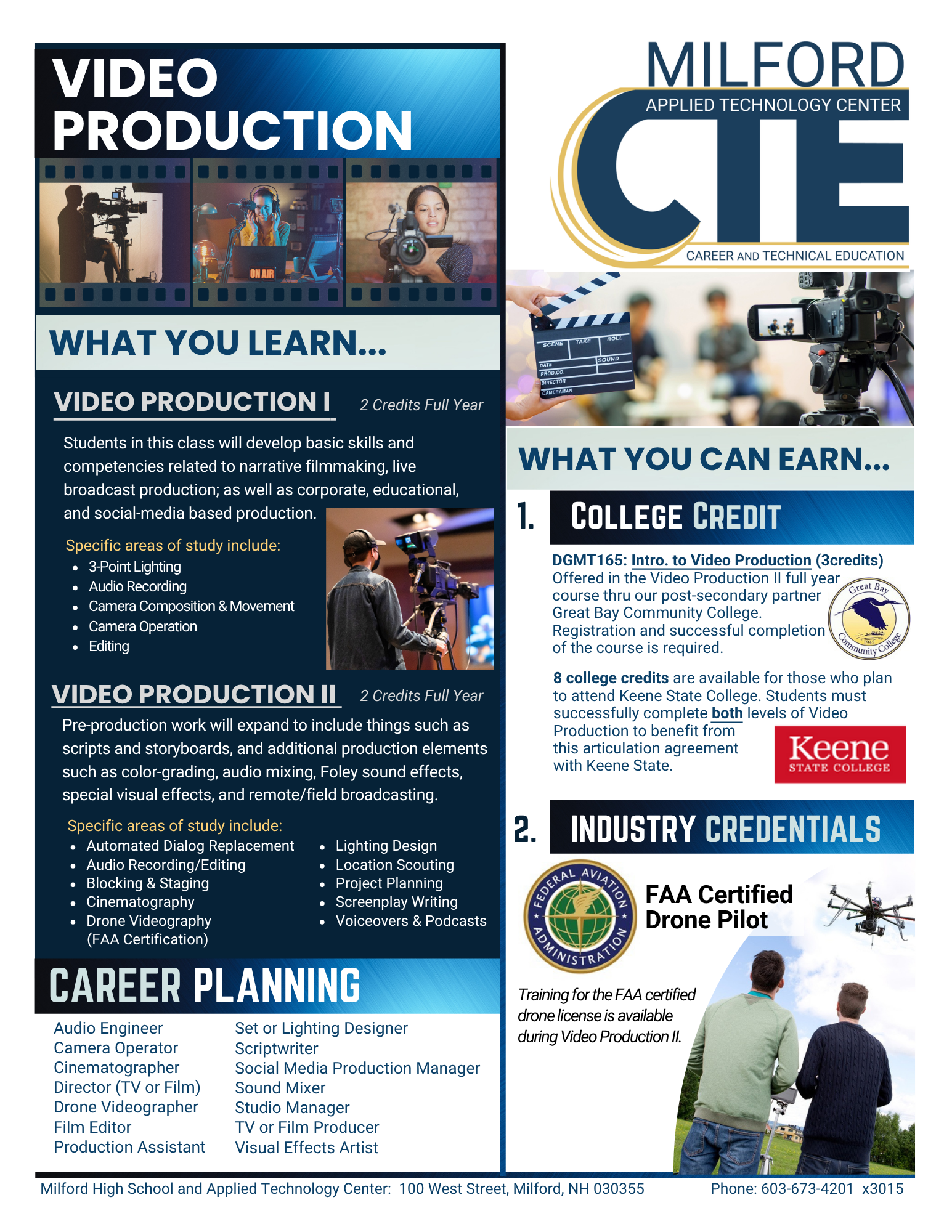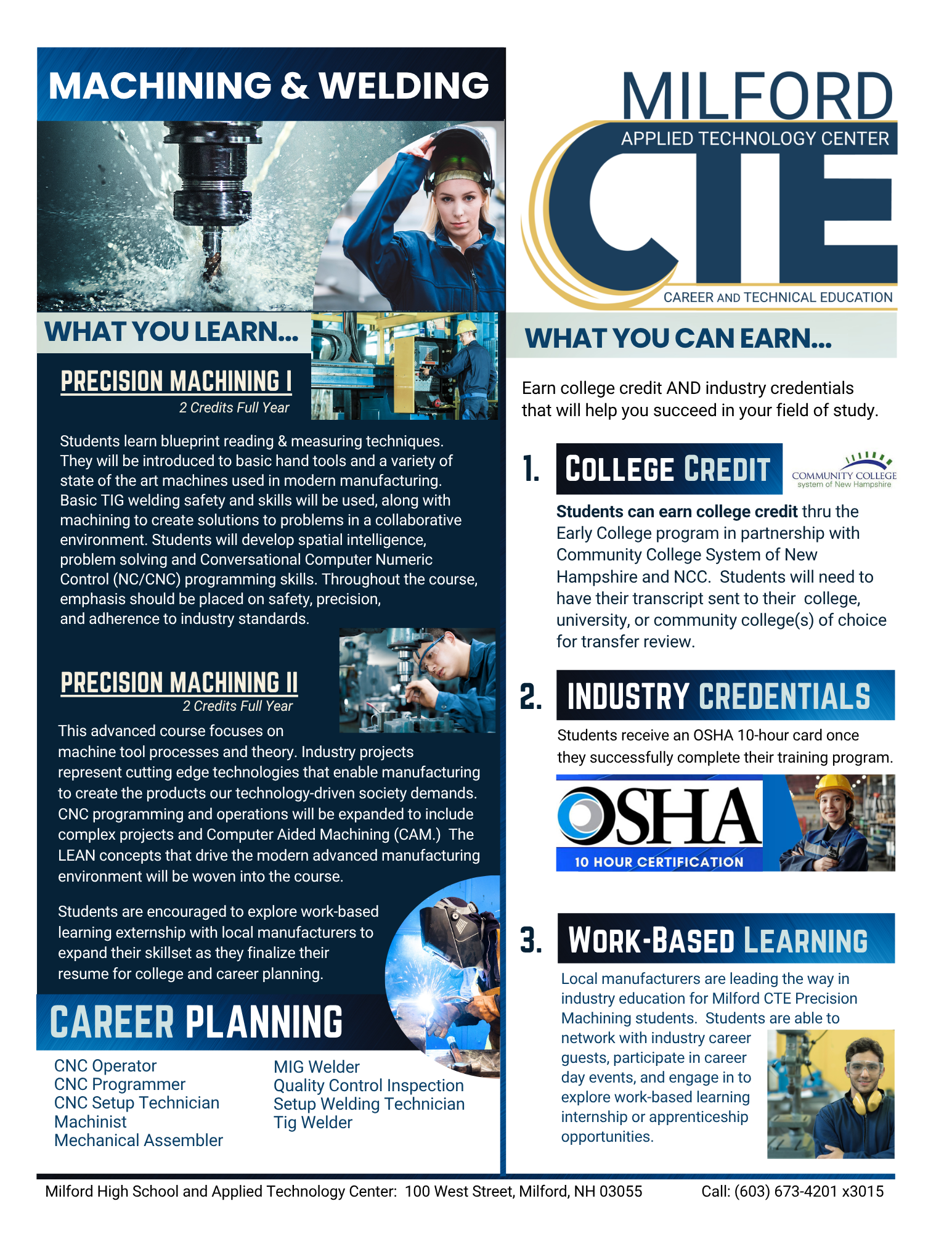 Milford High School and Applied Technology Center (ATC) is one of 28 official Career & Technical Education (CTE) centers supported by the state of New Hampshire and the US Department of Education.