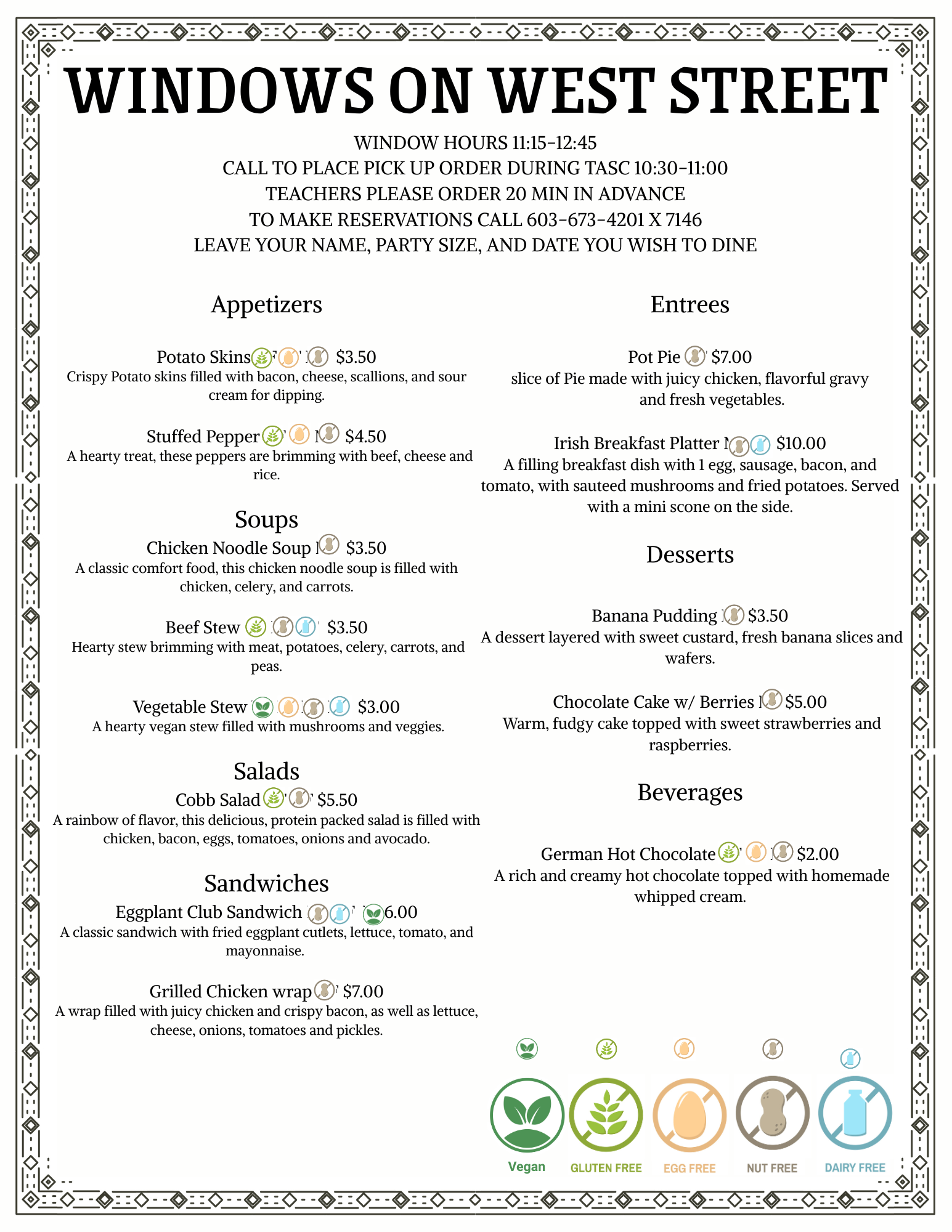 Menus have been handcrafted by our Culinary II students